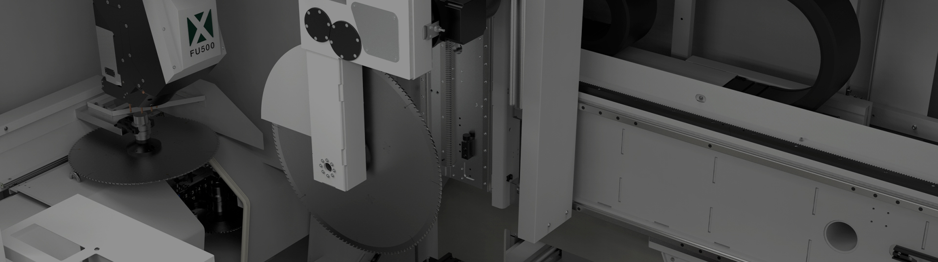 Machining centre with 5 interpolating axes for machining on 5 faces of aluminium profiles with a cross-section of 580 x 400 mm and steel tubes up to 5 mm thick. HSK E63 22 KW 24000 rpm liquid-cooled electrospindle allows the production of custom machined and milled elements. According to the configuration chosen it is possible to carry out single area, double area, pendular or multi-piece machining (up to 8 pieces with XPAL). 6 versions are available according to the length of the machine bed and whether or not cutting unit X2 is present.